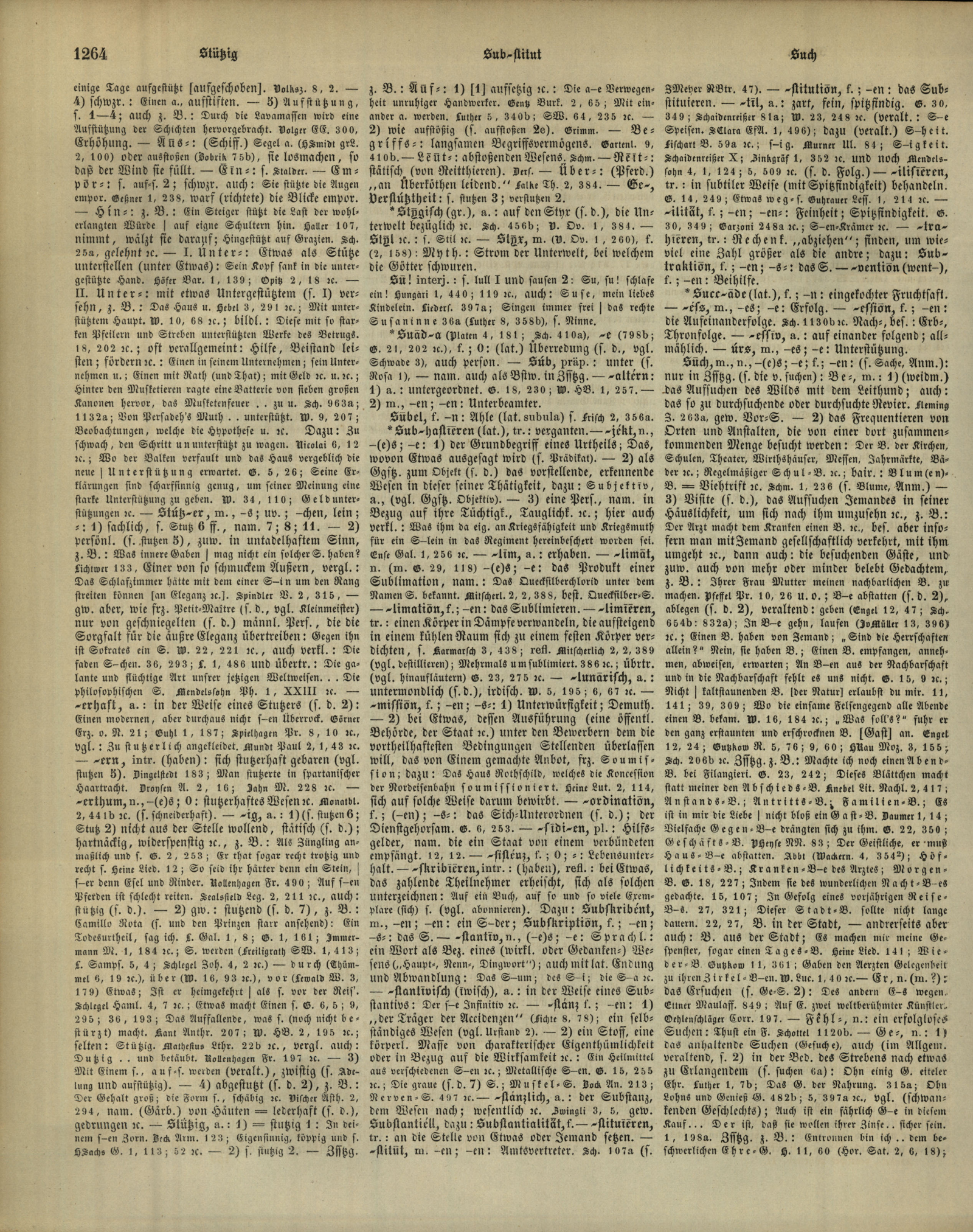 • subhastieren, Subjekt, sublim, Sublimat, Sublimation, sublimieren, sublunarisch, Submission, Subordination, sidi~en, Subsistenz, subskribieren, Subskribent, Subskription, Substantiv, substantivisch, Subslanz, substanzlich, Substantiell, Substantialität, substituieren, Substilut, Substitution, subtil, subilisieren, Subilität, subtrahieren, Subtraktion, Subvention
