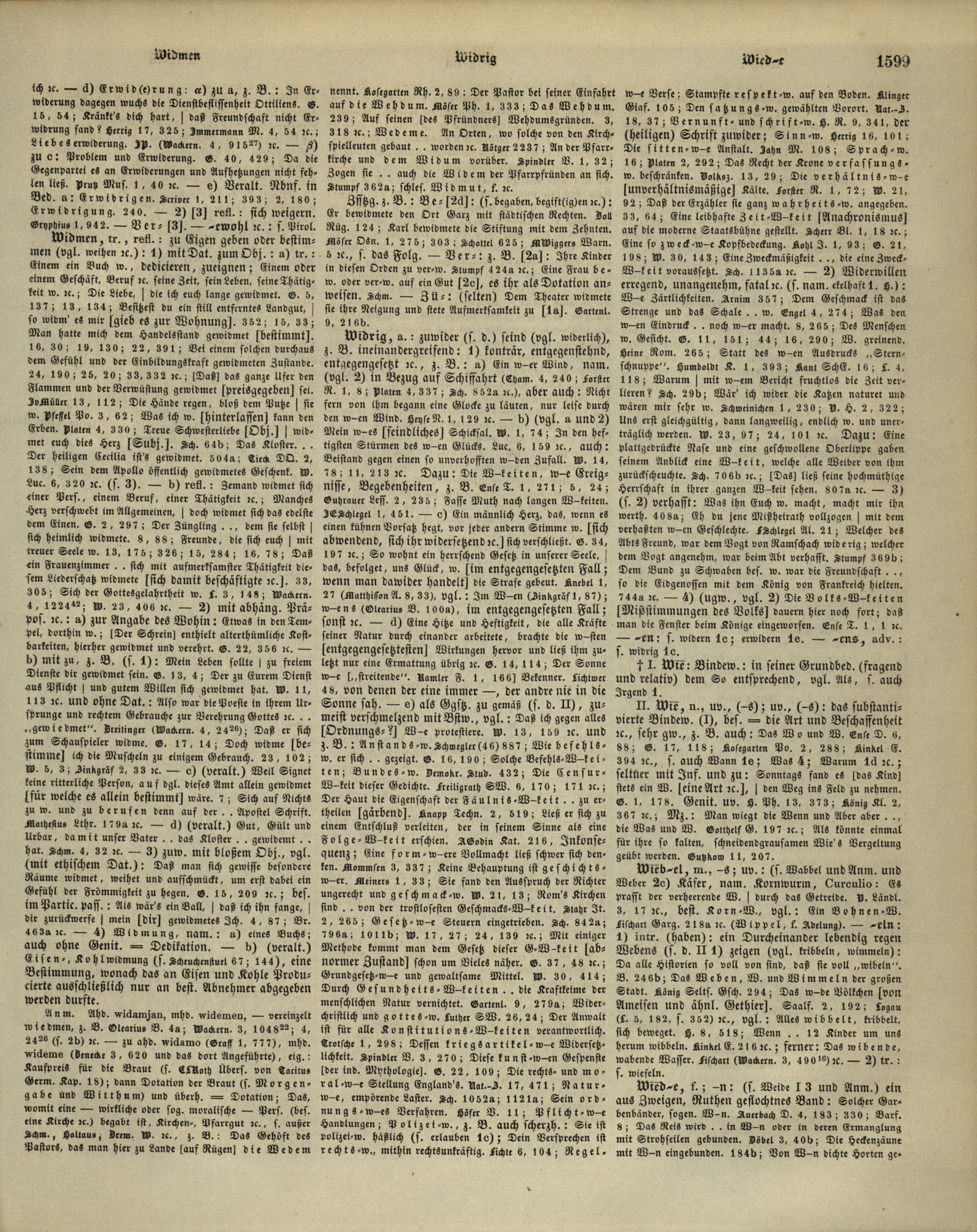 • widrig, Widrigen, widrigens